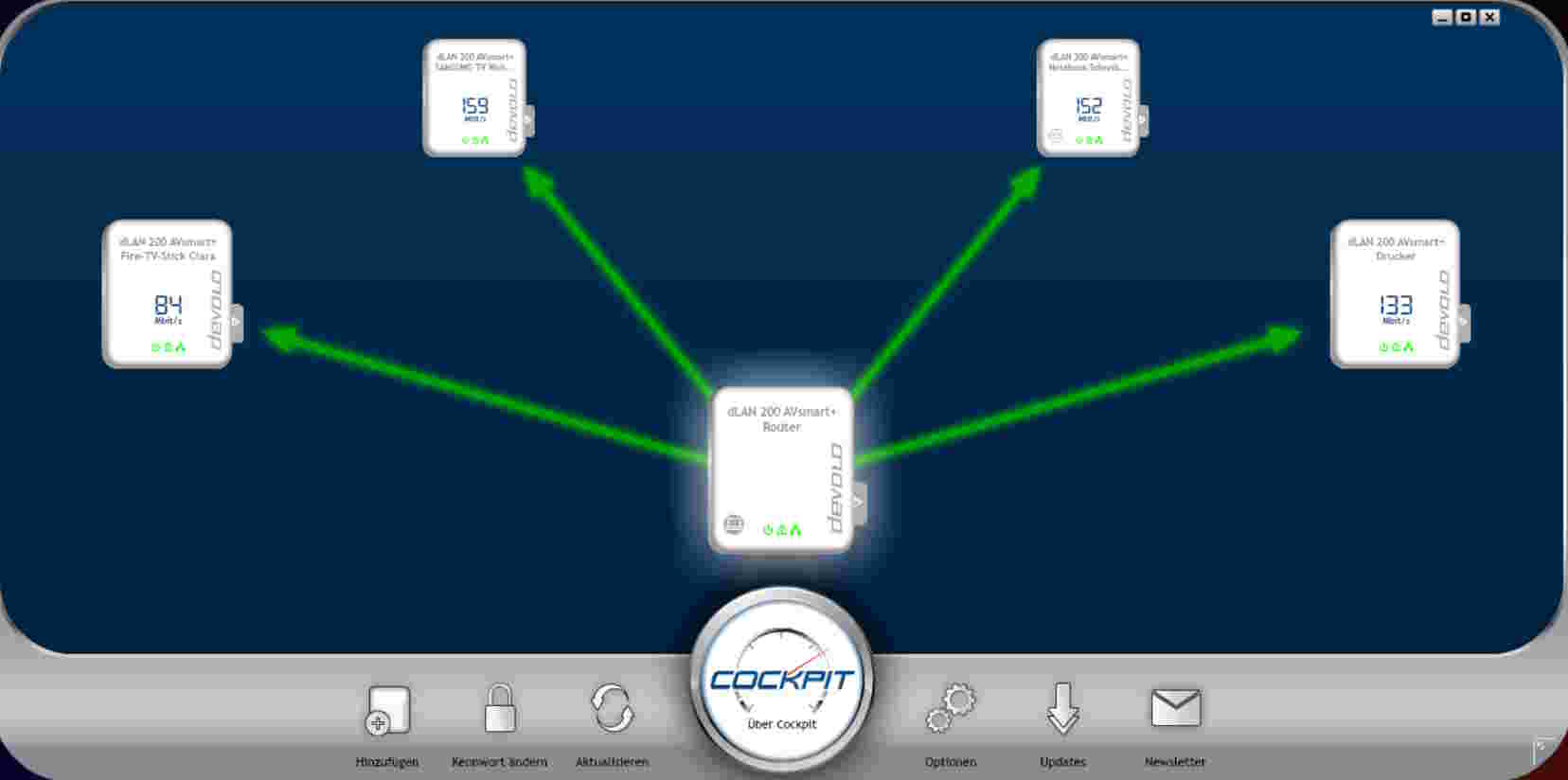 Lt. devolo-Cockpit ist der Drucker "dran" (siehe Anhang)