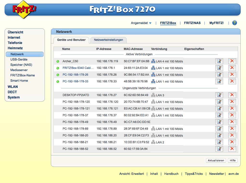 nach langfristigen WLAN-Problemen mit einer alten Fritzbox 7270 habe ich an diese einen „TP Link Archer 50“ über LAN als Access Point angeschlossen.