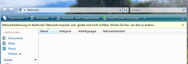 Nun kommt es nach jedem Neustart vor, dass die Netzwerkerkennung bei beiden PCs deaktiviert ist (siehe Screenshot). Wenn man sie auf beiden PCs manuell per klick wieder aktiviert läuft auch das Netzwerk.