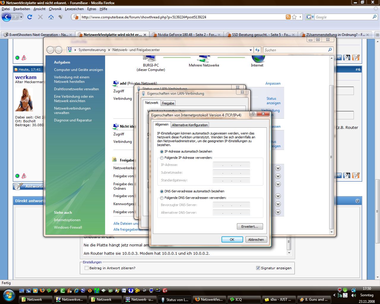 Der PC sagt mir immer was von "Nicht identifiziertes Netzwerk" und wenn ich die IP anwähle die mir nachher zugewiesen ist, find ich auch nichts.