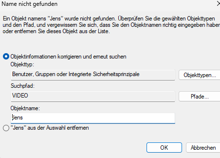 OK und wie lege ich den Benutzer an?? Bekomme immer eine Fehlermeldung das der Name/Objekt nicht gefunden wurde. Aber nur vom Win 10 Rechner auf den Winn 11, andersherum ohne Propleme! Anbei nochmal ein paar Screenshots