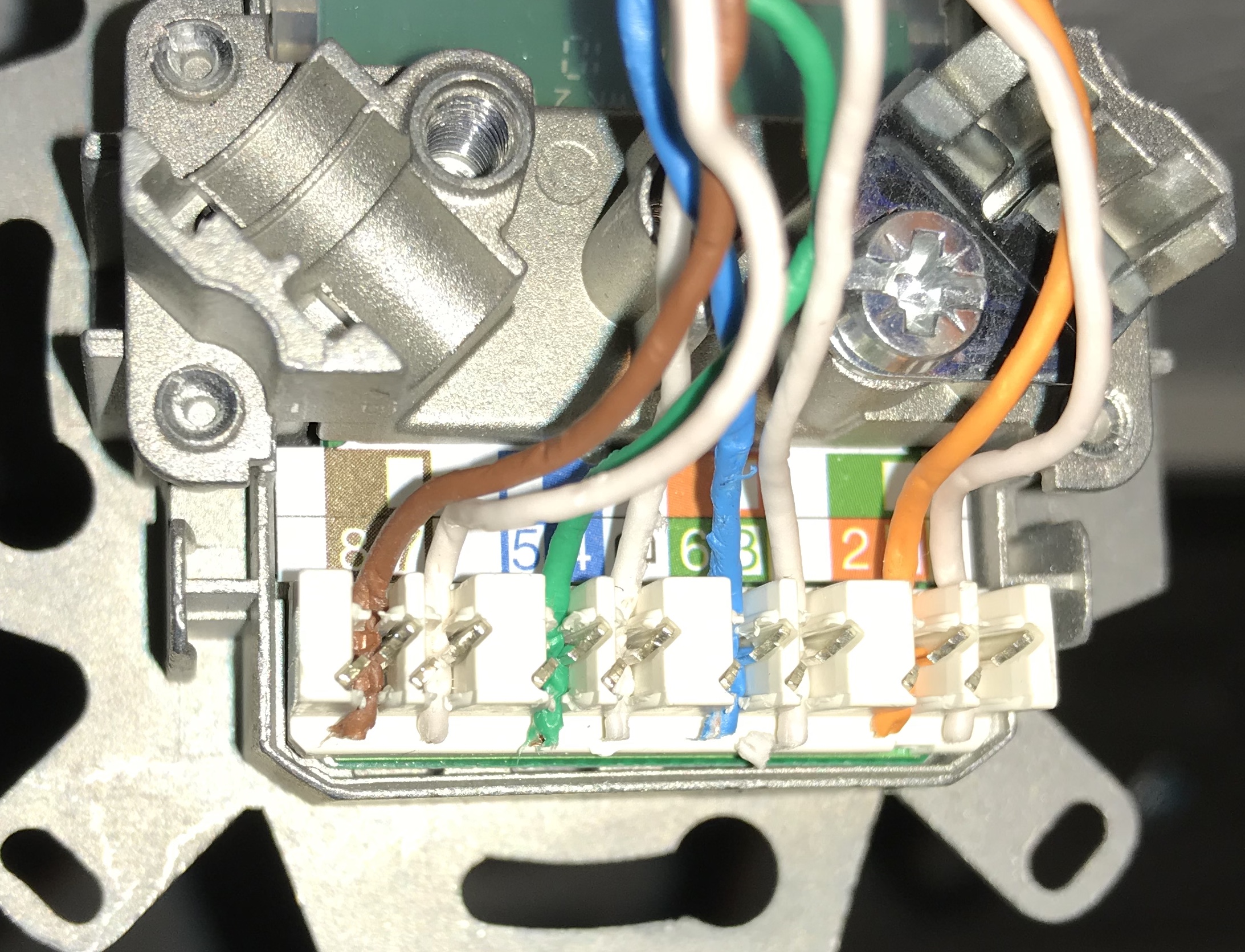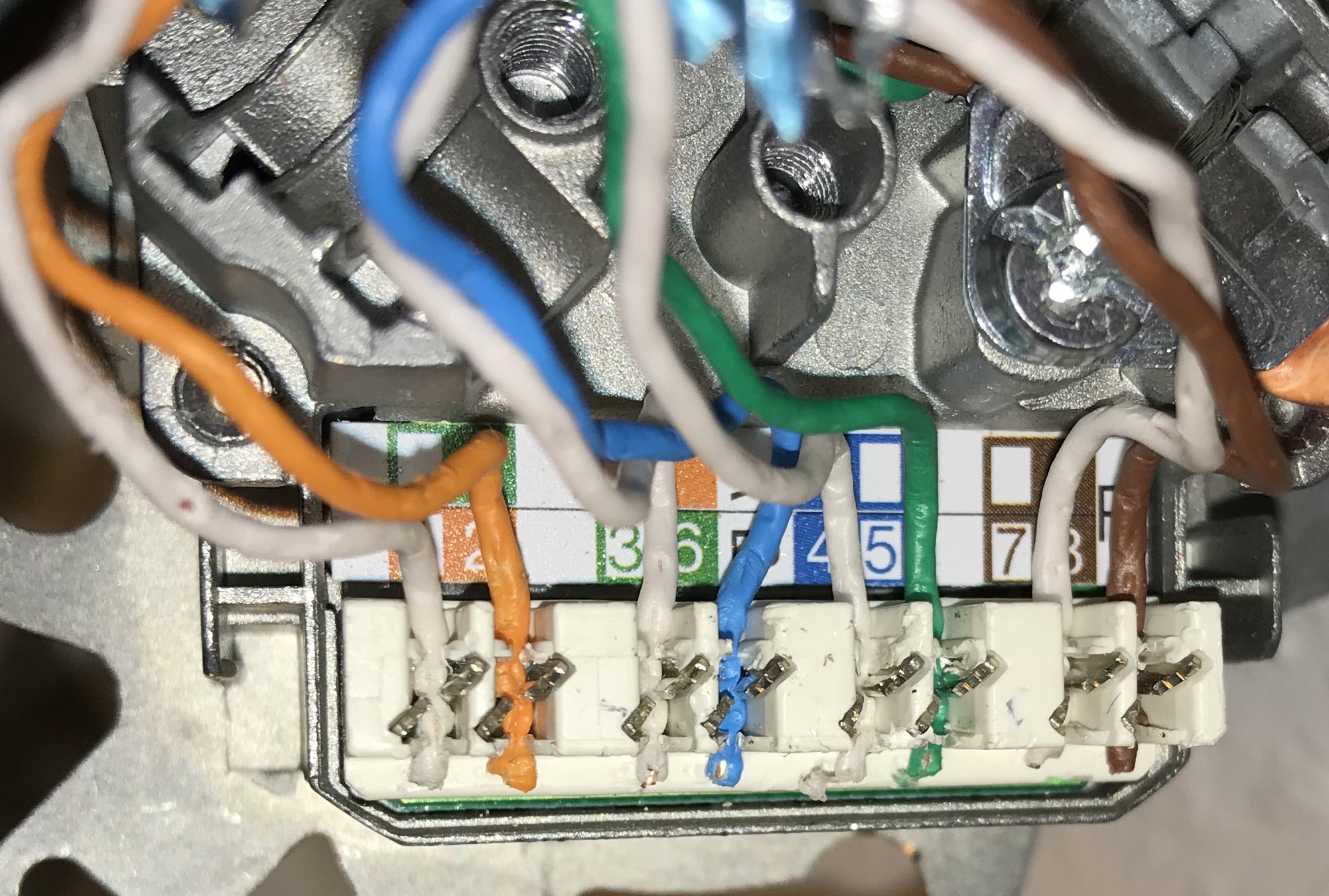 Mittlerweile gibts aber mehr bei der Telekom, also bin ich wieder ins Grübeln gekommen und suche nun nach der Ursache. Hierfür habe ich mir ein kleines Set mit Tester und LSA Auflegewerkzeug gekauft. Im WZ und SZ springen die LEDs schön parallel von 1-G, hier kommen auch 1Gbit an. Bei der anderen Verbindung leuchtet LED 5 nicht auf bzw. leuchtet zusammen mit G. Ich habe beide Unterputzdosen demontiert und mir die Pins soweit angeschaut...scheint i.O. bzw. gleich.