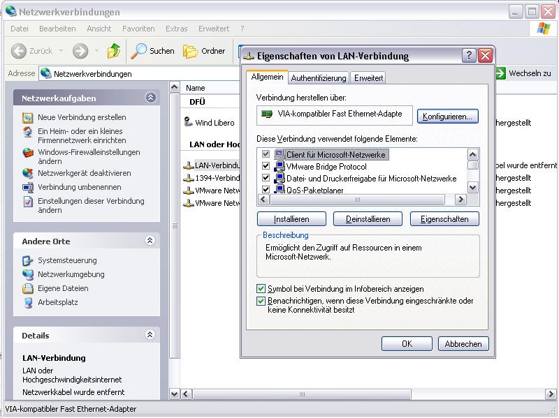 Habe in den Eigenschaften von meiner Netzwerkverbindung angehäkelt, dass sie im Systray angezeigt werden soll. Dieses geschieht aber nicht!!! Erst dann wieder, wenn ich nach dem Systemstart auf die Netzwerkumgebung gehe und sage Netzwerkverbindung anzeigen lassen.