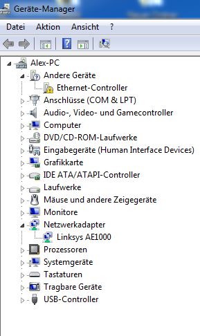 - versuchen den Ethernet Treiber zu installieren (siehe Screen Gerätemanager)