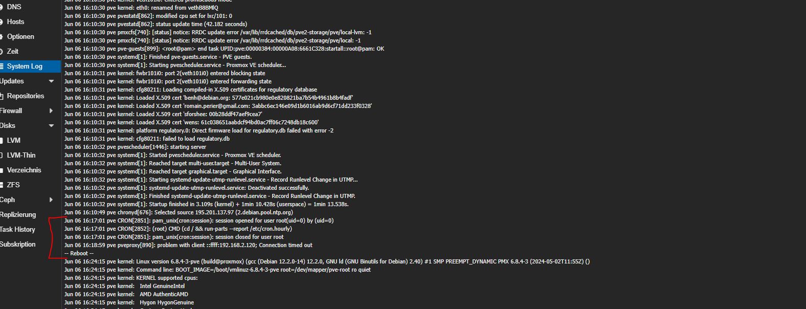Ich habe schon bei der neuesten Kernelversion von Problemen gelesen... aber bei mir treten die Probleme ja auch bei älteren Proxmox-Versionen auf.