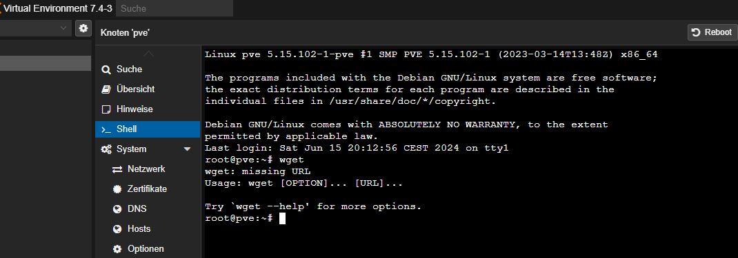 Installiert/ausprobiert habe ich verschiedene Proxmox-Versionen, von 7.4-1 bis zur aktuellsten 8.2.2.