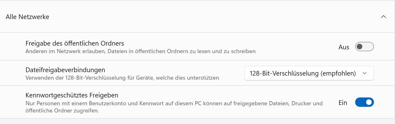 Auf dem PC (Win 11) habe ich einige Ordner für "jeden" freigeben, damit meine Frau auf ihrem Laptop (Win 11) zugreifen (Vollzugriff) kann. Bis dato gab es kein Problem. Nun hat meine Frau ihren Laptop länger nicht mehr nutzen können, und heute hat sie versucht einen freigegebenen Ordner zu öffnen. Nun erscheint immer wieder die Meldung bzgl. der Eingabe eines Nutzers und Passwortes. PC und Laptop sind lokal (also keine Anbindung an ein MS-Konto) ohne Passwort eingerichtet. Ich habe zwar viel im Netz über das Problem lesen können, aber keine Lösung konnte mir da weiterhelfen :-( Daher mein Versuch hier im Forum.
