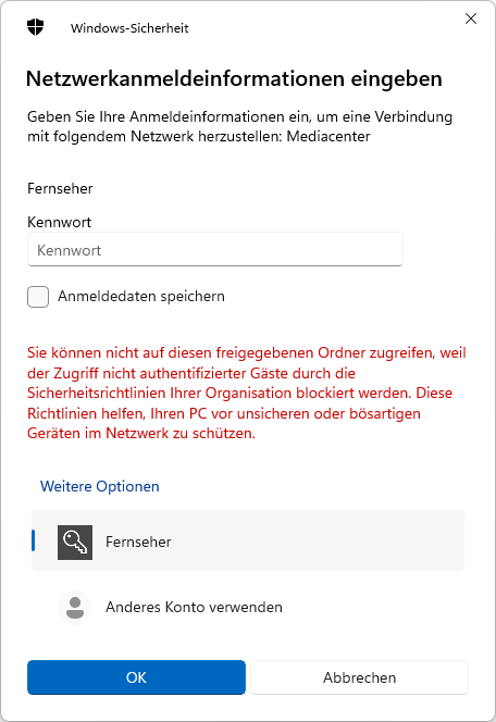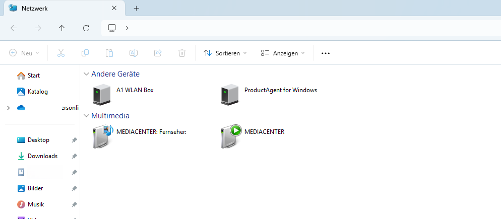 Zuerst müssen aus meiner Sicht mal die beiden Rechner im Netzwerk (Windows 11 und MediaCenter) als Computer aufscheinen, was sie leider noch nicht tun. Nur die Multimedia-Anwendungen vom MediaCenter scheinen schon auf.