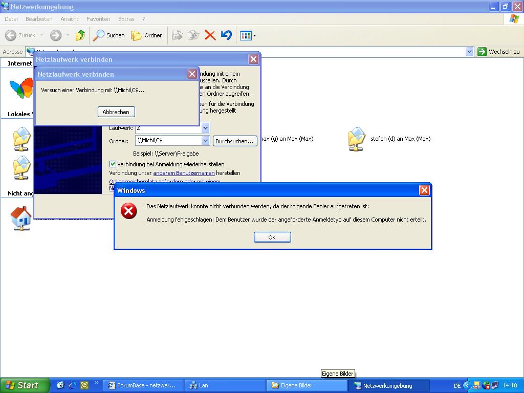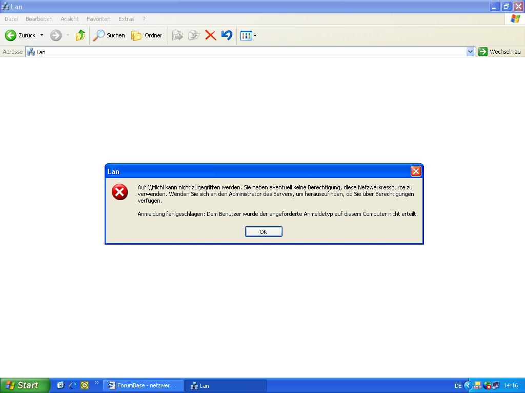 ein anderer pc mit dem ich das getestet habe hatte aber die gleiche konfiguration und auf den konnte ich zugreifen.
