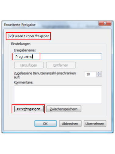 Rechtsklick | Freigabe ... | Freigabe | Erweiterte Freigabe