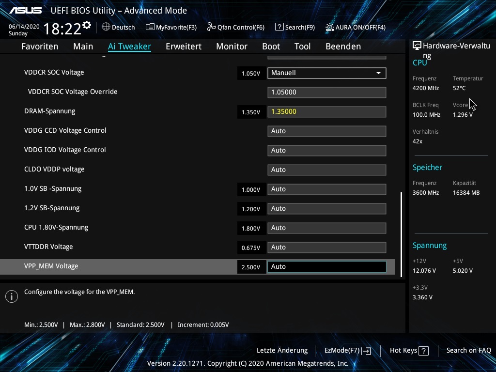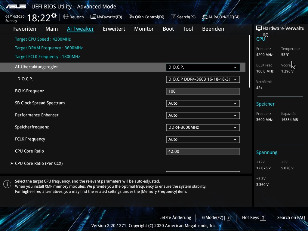 Ich habe übrigens keinerlei OC Einstellungen gemacht, es ist alles auf Standard (also so, wie es seit dem ersten Start eingestellt ist), da ich nicht ganz so viel Ahnung habe.