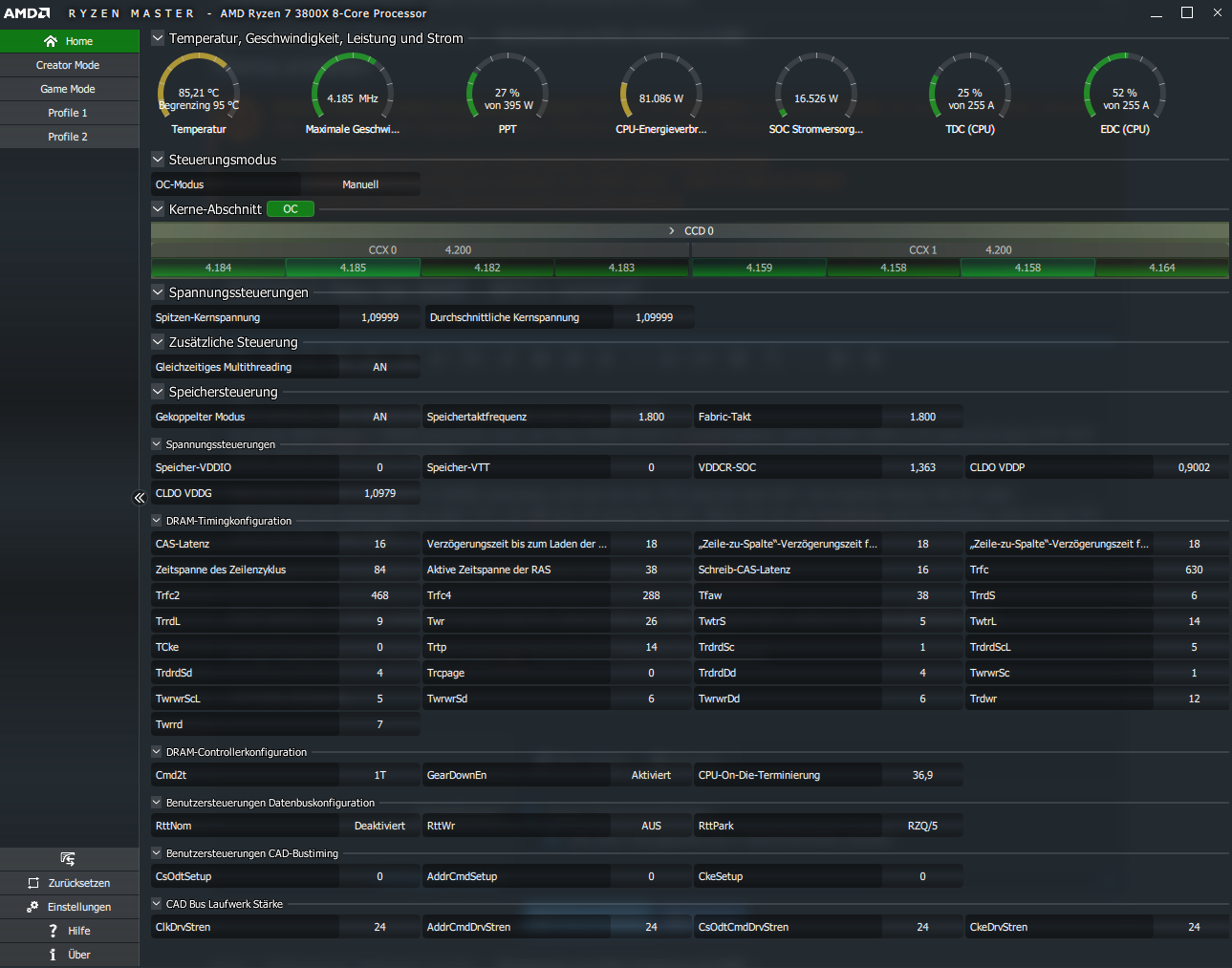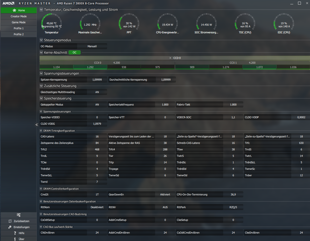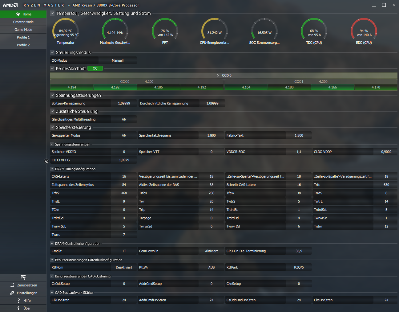 Im Anhang ist ein Screenshot mit diesen Temperaturen, im Hintergrund lief Handbrake. Auch Ryzen Master habe ich angehängt.