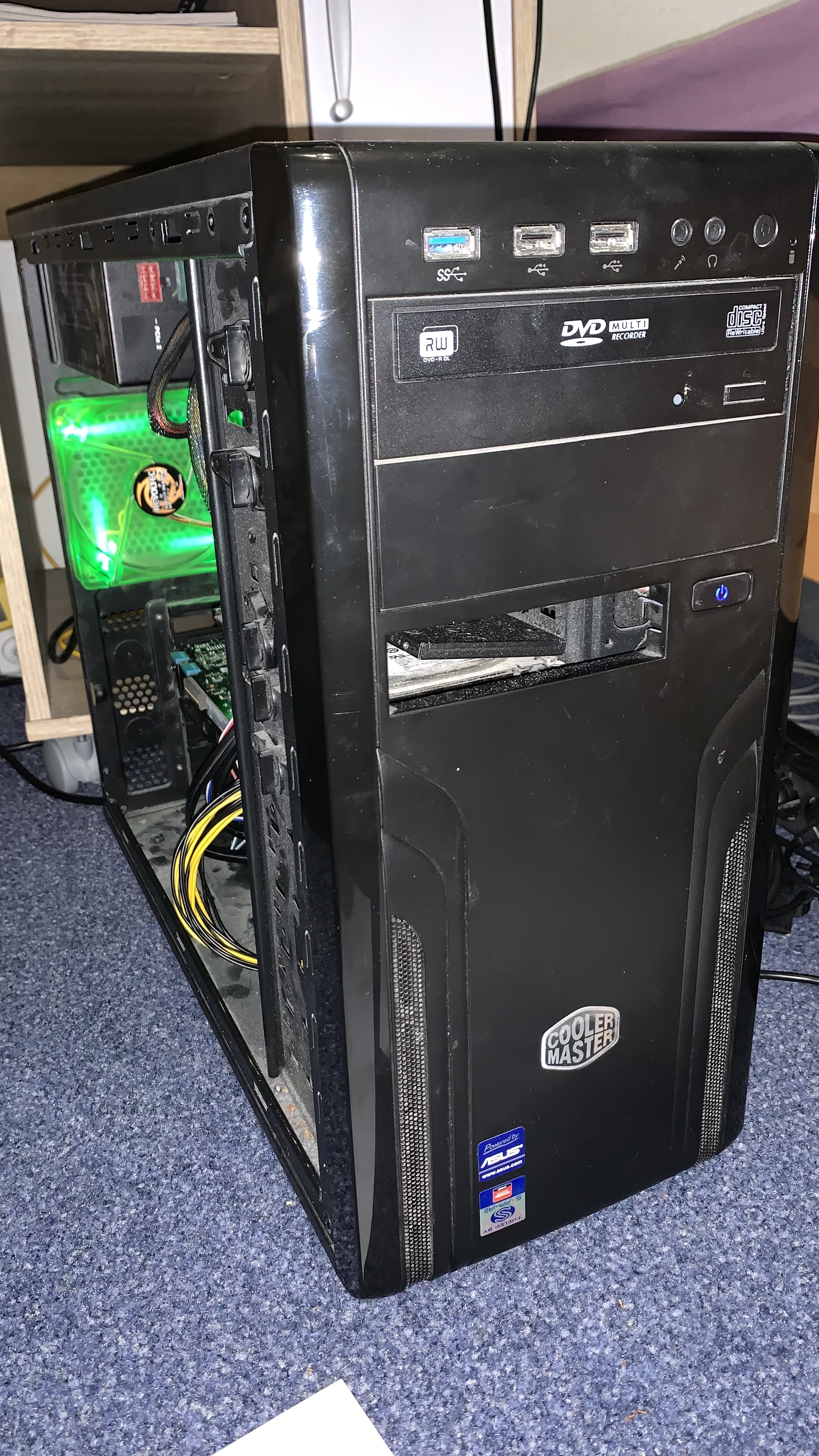 So bekommt wenigstens der CPU Lüfter "etwas" Frischluft, wo soll sie denn sonst bei dem Gehäuse und Schreibtisch einschub her kommen?Denniss schrieb:Der Lüfter hinten scheint falschrum, der bläst doch Luft rein statt die abzusaugen?