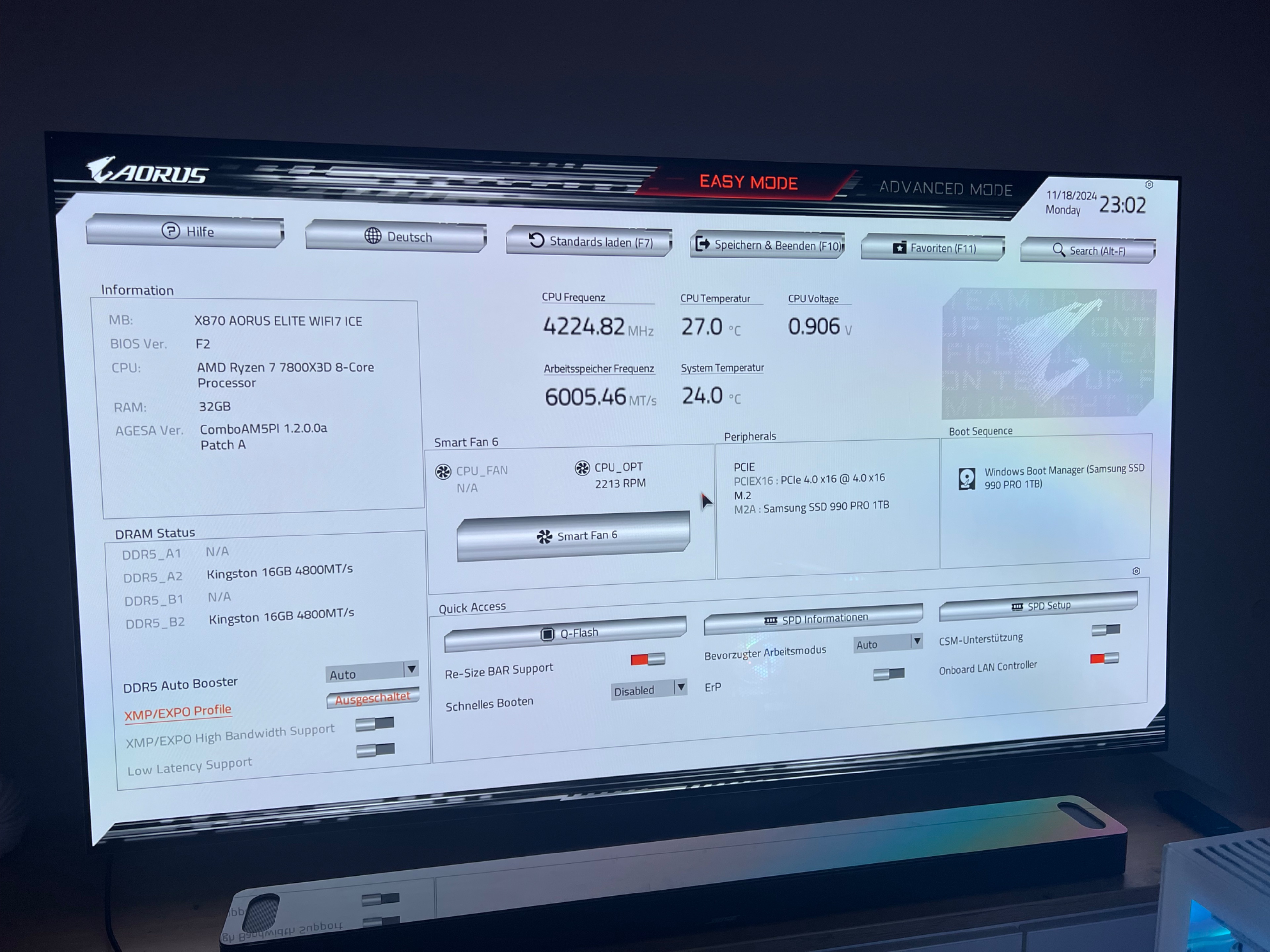 Ich habe kein bios Update oder Ähnliches gemacht . Pc zusammengebaut , alle Treiber installiert und das war’s .