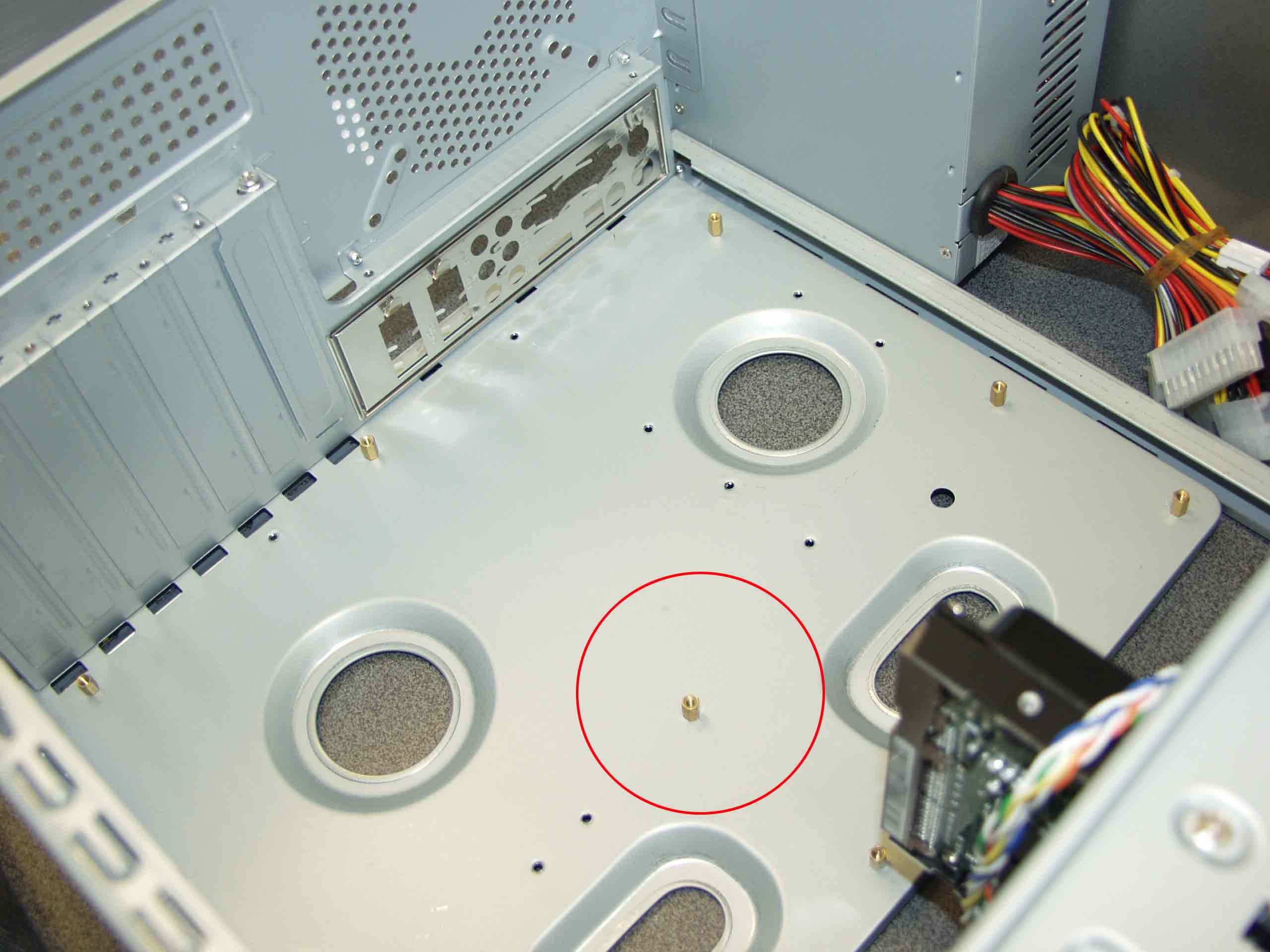 ich sehe auf dem Foto rechts drei Abstandshalter die noch eingeschraubt sind und dann am Board daneben ein Loch wo einer Fehlt.