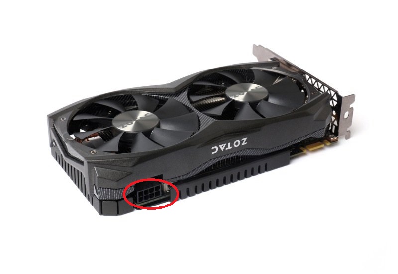 An der Grafikkarte befindet sich eine 8-polige Buchse, die muss mit dem Netzteil verbunden werden: