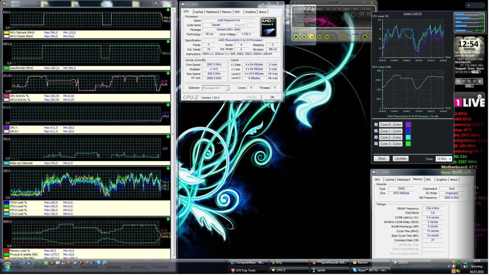 CPU: QuadCore AMD Phenom X4 Black Edition 9950, 2600 MHz (13 x 200)