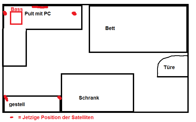 Im Anhang noch ein sehr grober Plan des Zimmers (die Proportionen stimmen nicht immer aber in etwa könnte es helfen^^):