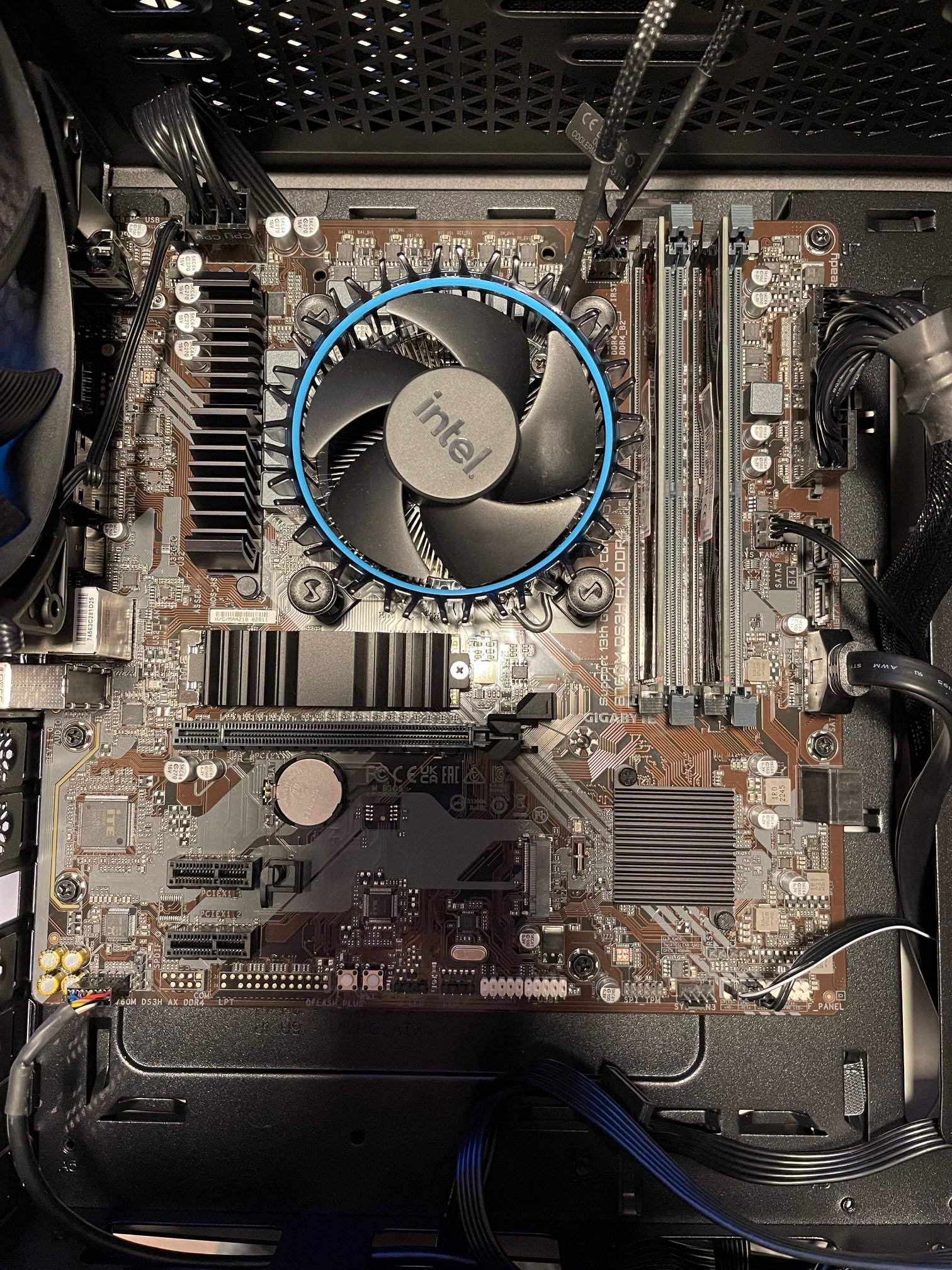 - Mainboard: Gigabyte B760M DS3H AX DDR4 (LGA 1700, Intel B760, uATX)