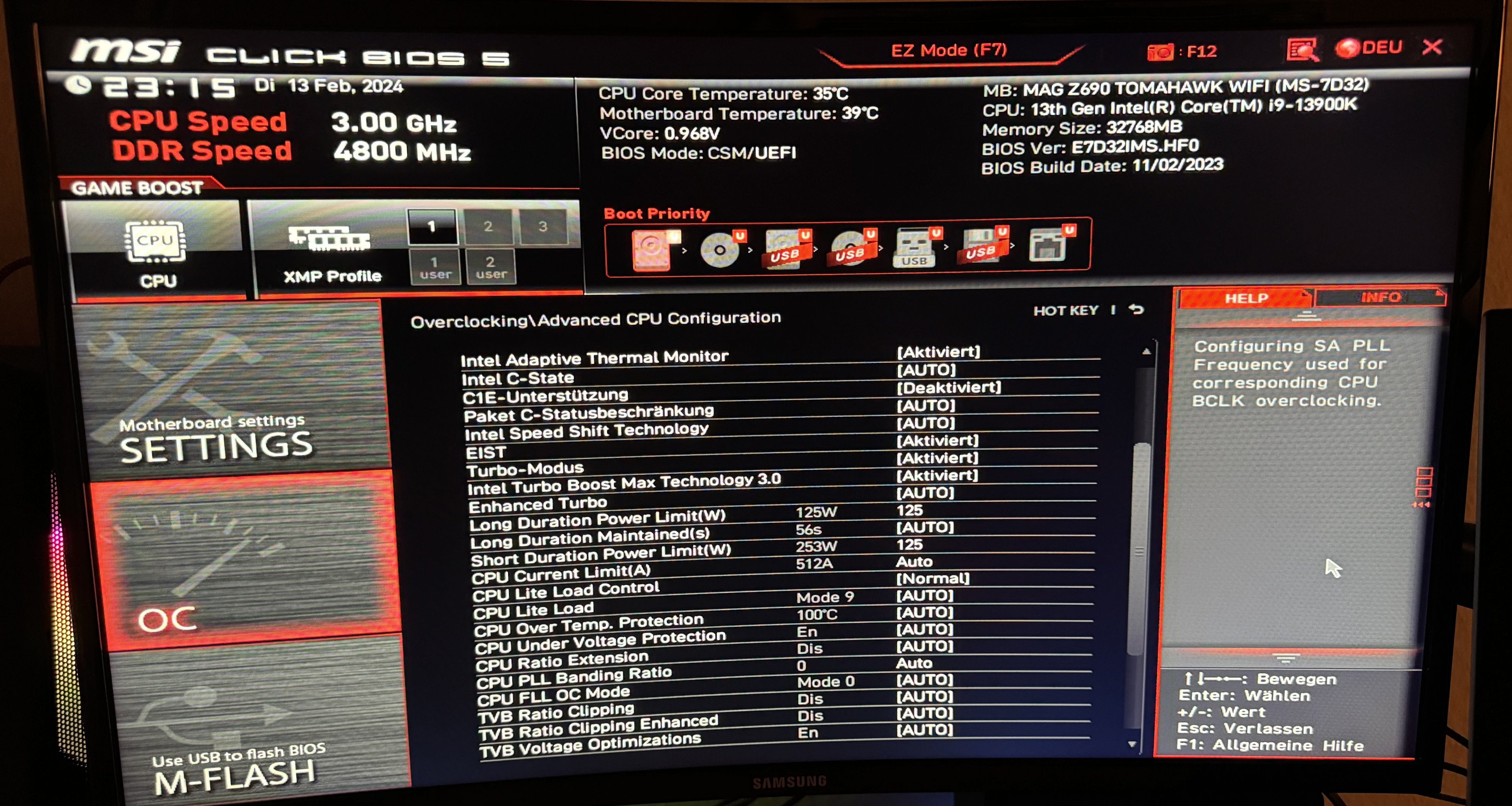 Man machte mich dann auf die TDP-Werte aufmerksam. Meine AIO schafft wohl max. 180W und meine CPU zieht im PL2 wohl 253W.