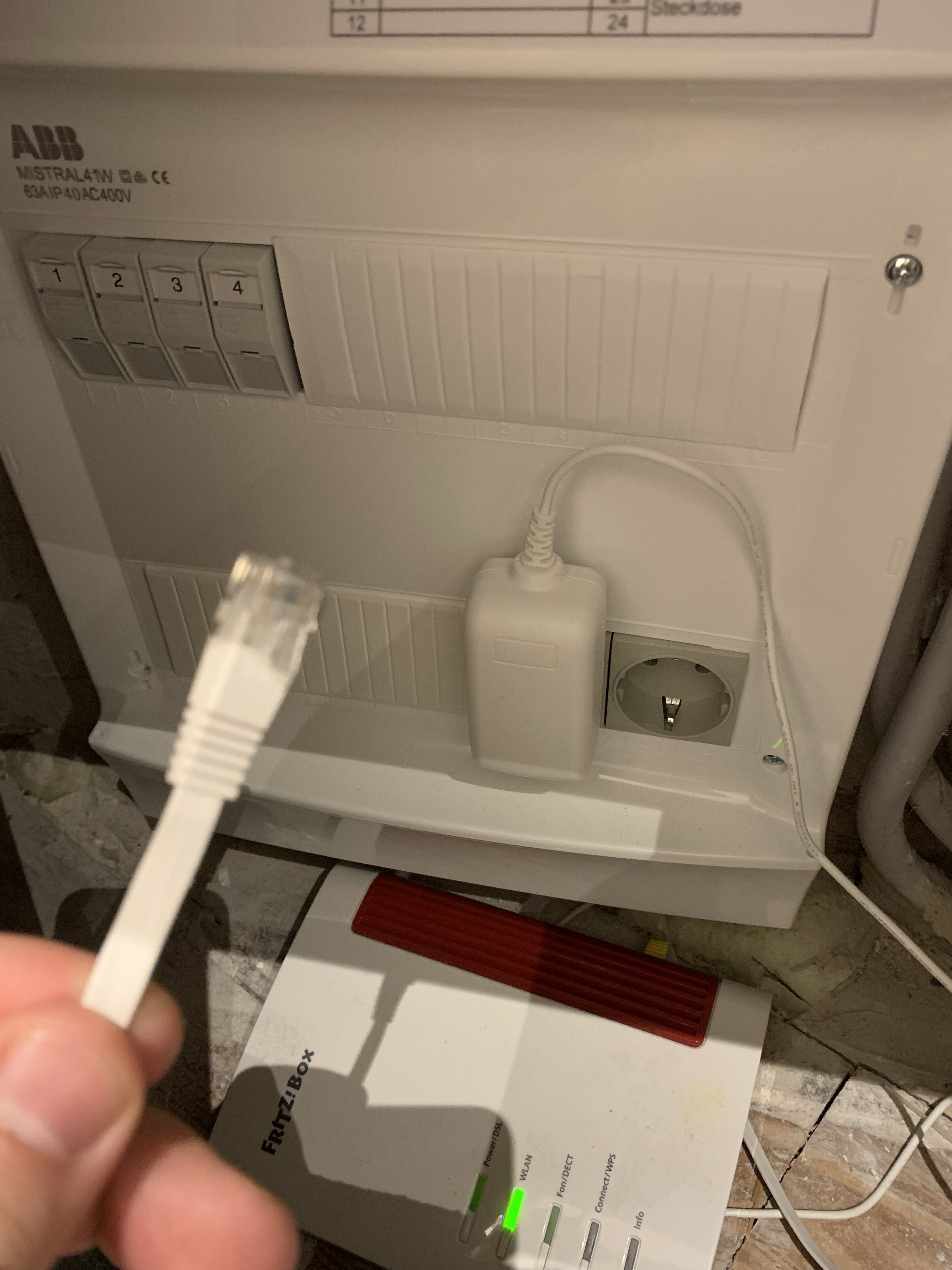 Dunno ob der Kasten im Keller oder auch in der Wohnung ist. Sieht eher nach Keller aus. Da ist mit WLAN über Router schon schwierig.