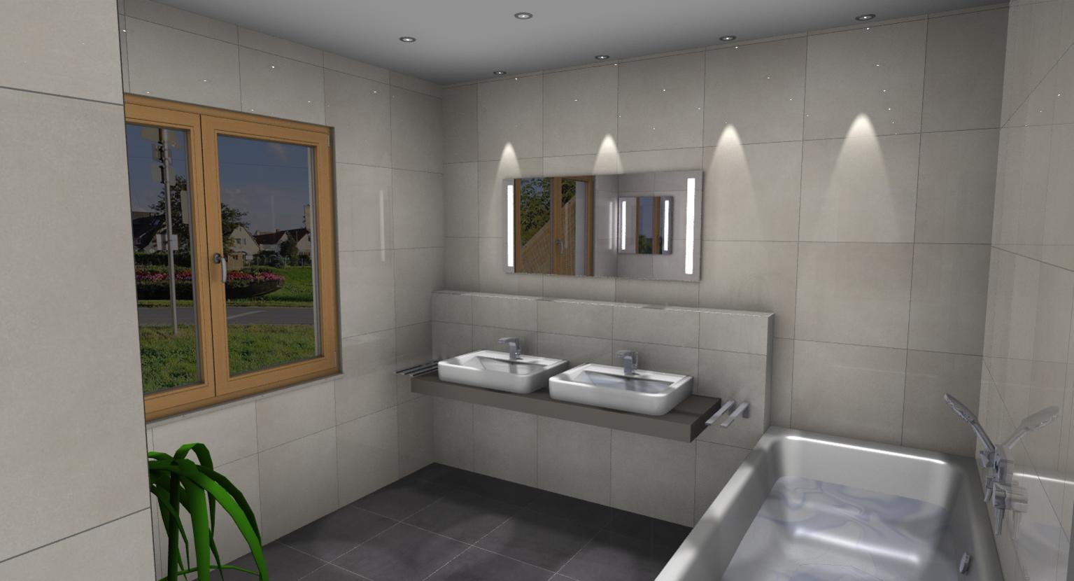 Also eben habe ich mal ein Bad gerendert. Es gibt dabei die Einstellungen: "Vorschau","Standard" und "Hoch". Ich habe auf Standard mit relativ wenigen Details gerendert und das hat etwa 30-40 Minuten gedauert.. Ergebnis: