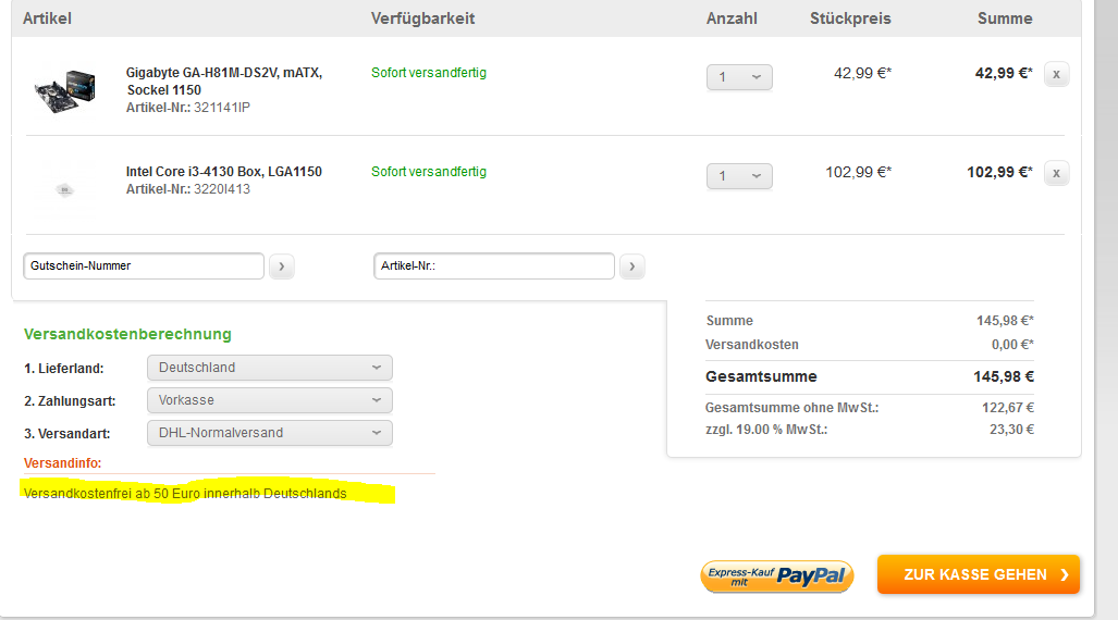 Bei anobo würdest du mit einem i3 für 146€ wegkommen. Habe da schon mehrmals bestellt und kann die daher empfehlen.