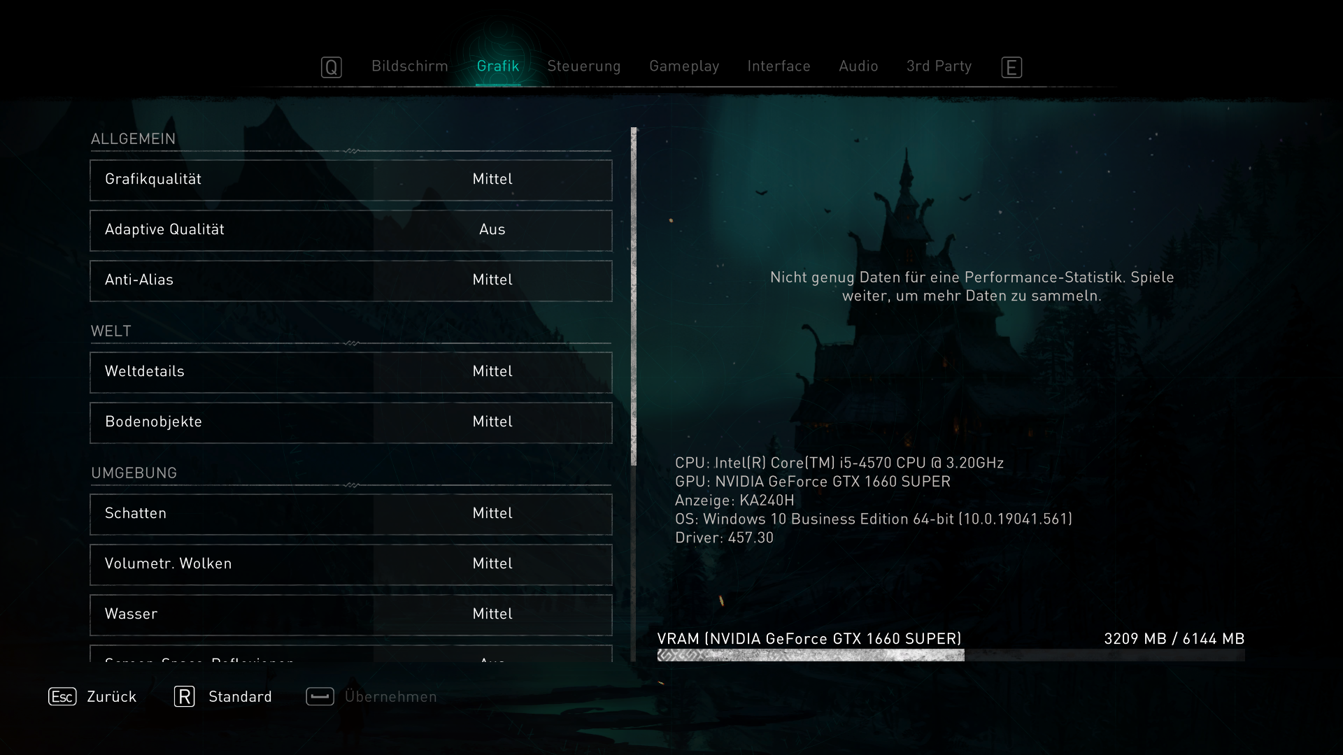 Daher habe ich mir vor einer Weile eine GTX 1660 zugelegt. Damit sieht AC Odyssey, COD MW und Watchdogs Legion super aus, allerdings für AC Valhalla brauche ich wohl eine neue CPU. Laut der Anzeige unten rechts im Einstellungsbildschirm kann ich die Grafikleistung um einiges weiter hoch drehen, aber es ruckelt dann sehr stark bzw dauert sehr lange bis überhaupt was kommt. Da heute Black Friday ist und am Montag Cyber Monday wollte ich jetzt mal die Augen offen halten. Hier meine aktuellen Komponenten: