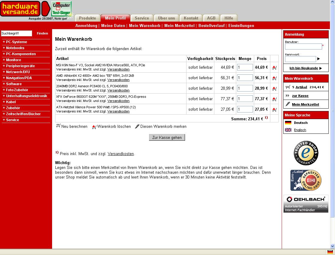 Nun gut... jedenfalls wollte ich mit einer neuen Grafikkarte warten bis die nächste Generation draußen ist, also nächsten Monat. Und nun stellt sich die Frage: Macht es Sinn CPU, Mainboard und Arbeitsspeicher schon jetzt aufzurüsten, und ne neue Graka halt nächsten Monat reinzusetzen? In nächster Zeit sollen meines Wissens ja keine neuen CPUs erscheinen... oder werden trotzdem die Preise innerhalb dieses monats noch bedeutend fallen? Naja jedenfalls wollte ich mir folgendes kaufen
