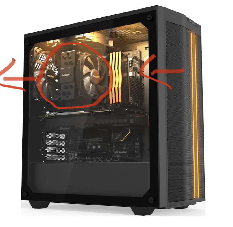 Der CPU Kühler ist falsch verbaut der Kühler müsste um 90 grad gedreht werden so das der Lüfter von vorne Luft ziehen kann und nach hinten rauspusten durch den Kühler, falls das noch keiner geschrieben hat.