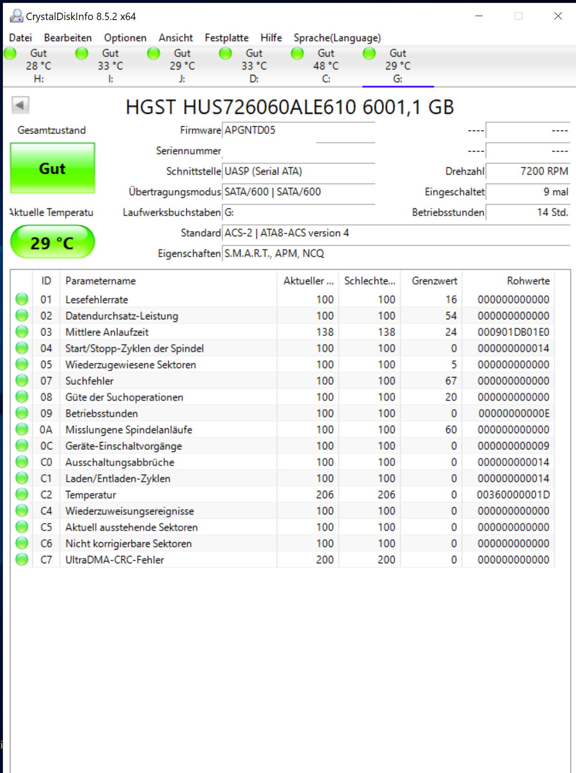 Was sagt CrystalDiskInfo?