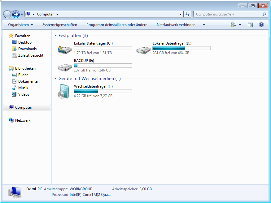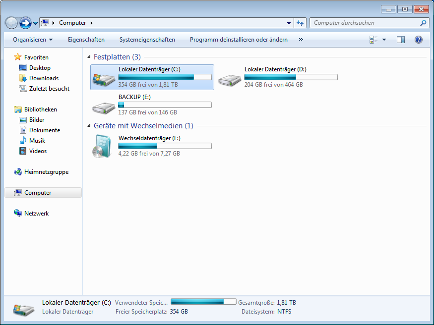 Mein PC hing sich kurzzeitig auf (Alle Programme) und ich konnte nurnoch im Explorer sehen, dass auf einmal nurnoch 100(!!)GB von 1,8TB frei waren, dies aber langsam wieder auf 1,79TB hinauf lief.