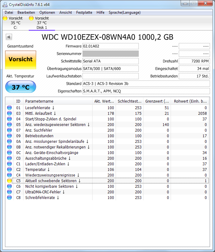 Ich gehe mittlerweile fast schon von einer defekten Platte aus. Wie seht ihr das?