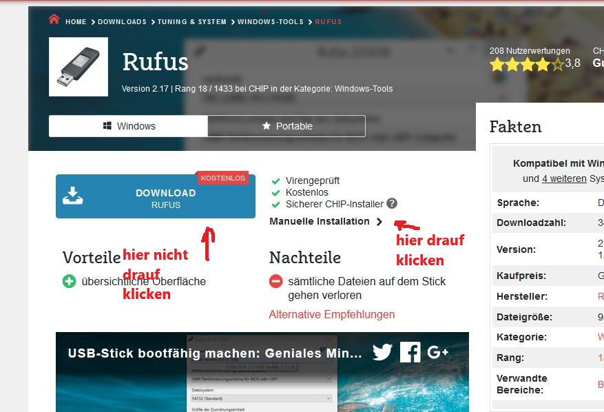 da musst du das kleine manuelle Download daneben oder im Text wählen