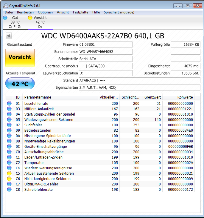 Es handelt sich um eine WDC WD6400AAKS-20A7B0.