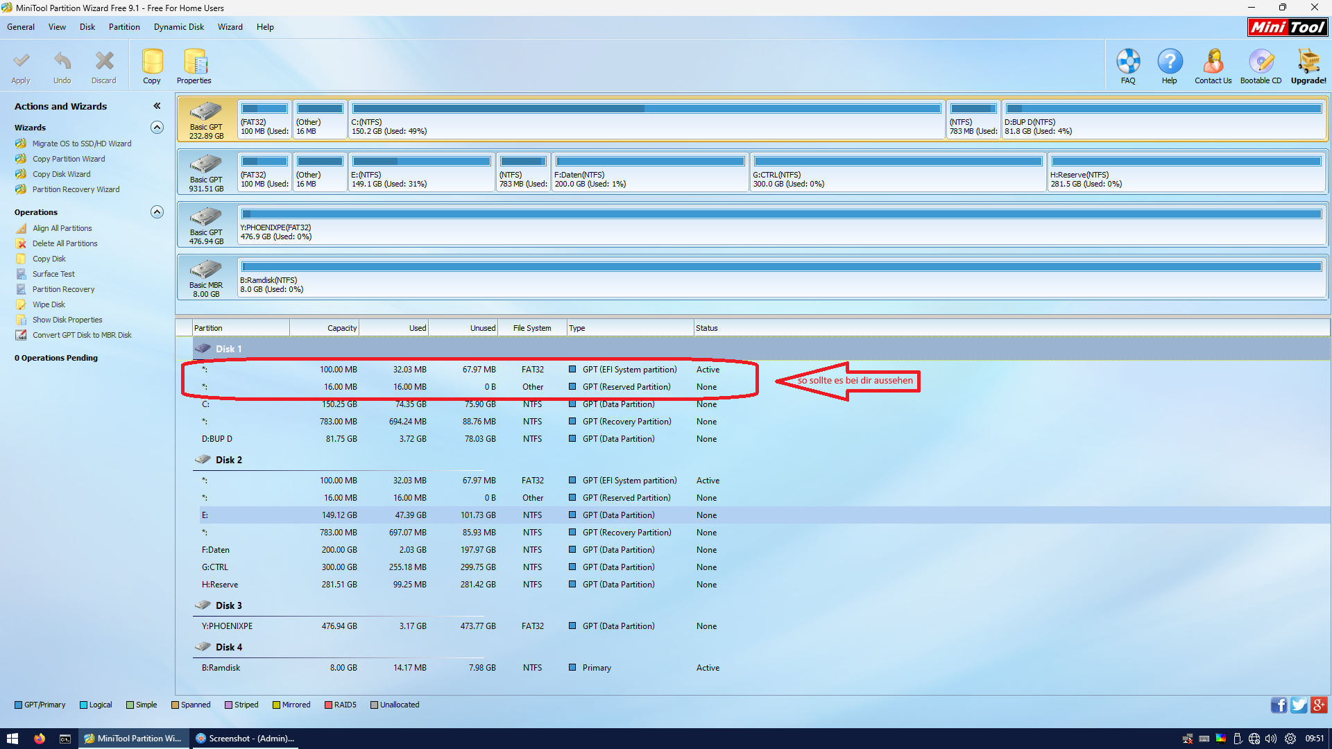 helfen lassen, um deine Bootpartition 215 MB auf der neuen SSD, die jetzt an den anderen PC hängt, aktiv und boot setzt.