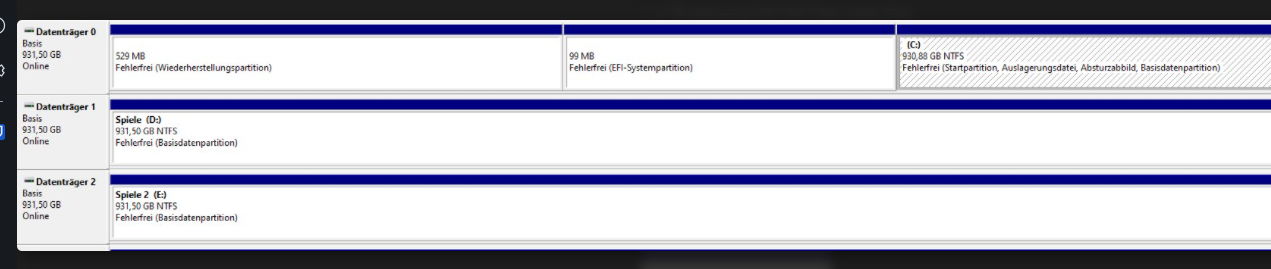 Da mein Mainboard eine dritte SSD NVME aufnehmen kann, möchte nun eine 2 TB hinzufügen und das System dann neuaufsetzen. Wie kann ich es diesmal vermeiden, dass Windows auf der 860 QVO landet? Muss ich die Platten im Rechner austauschen oder nur beim Partitionieren etwas beachten, vorbereiten etc.? Ich habe ein Bild von meiner jetzigen Datenträgerverwaltung angehängt. Da ich vom Partitionieren seit einigen Jahren kaum noch Ahnung habe, wäre ich super dankbar, wenn Ihr mir erklären könntet, auf was ich achten muss. Ob ich ein Partitioniertool nutzen sollte und ob ich im ersten Schritt irgendwas im Rechner ändern muss. Bitte erklärt es so einfach wie möglich, denn außer Spiele installieren und spielen habe ich seit vielen Jahren nicht mehr unter Windows gemacht.