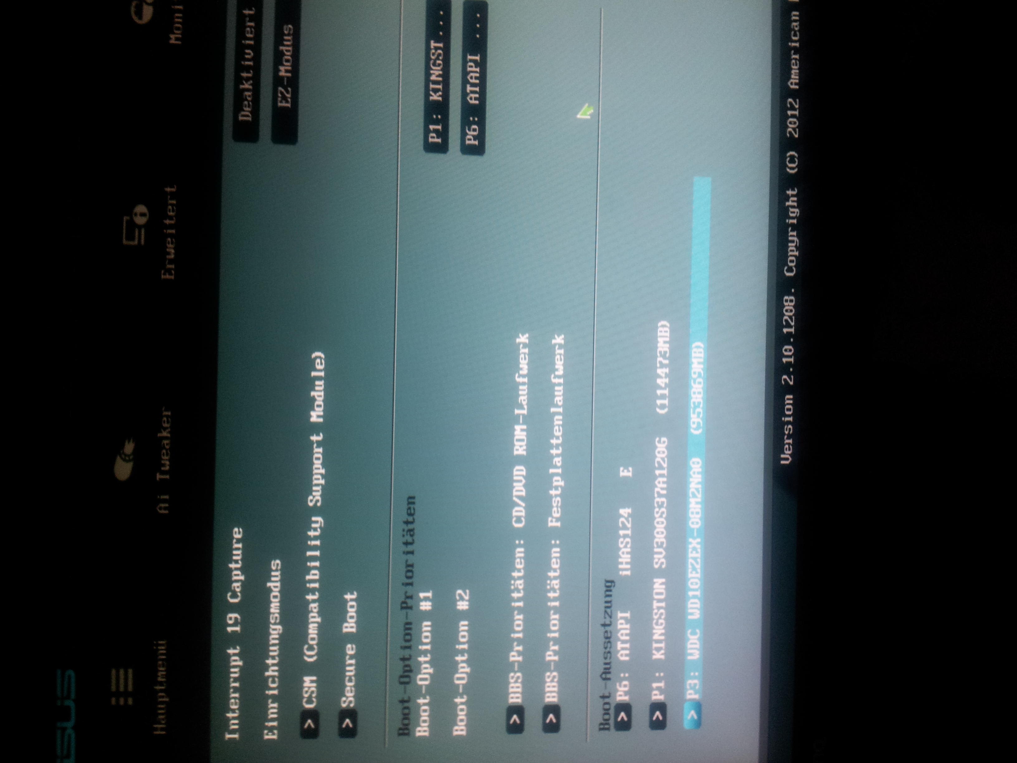 Wenn ich nun den PC ausschalte und die WD anschließe und den PC wieder hochfahren will braucht er 1. Ewig bis das Asus logo weg ist wo steht welche Tasten man drücken muss um ins Bios zu kommen nach einer ewigkeit kommt dann das Bild wo Windows wird gestartet steht bis sich das Win 7 logo aufbaut und dann bleibt er da stehen..