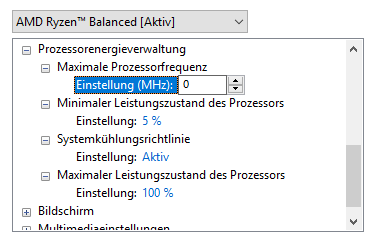 So ich bin auch gerade auf diesen Punkt gestoßen, als ich mich Fragte warum meine CPU nicht runtertaktet. Der minimale Leistungszustand ist auf 90% gestanden.
