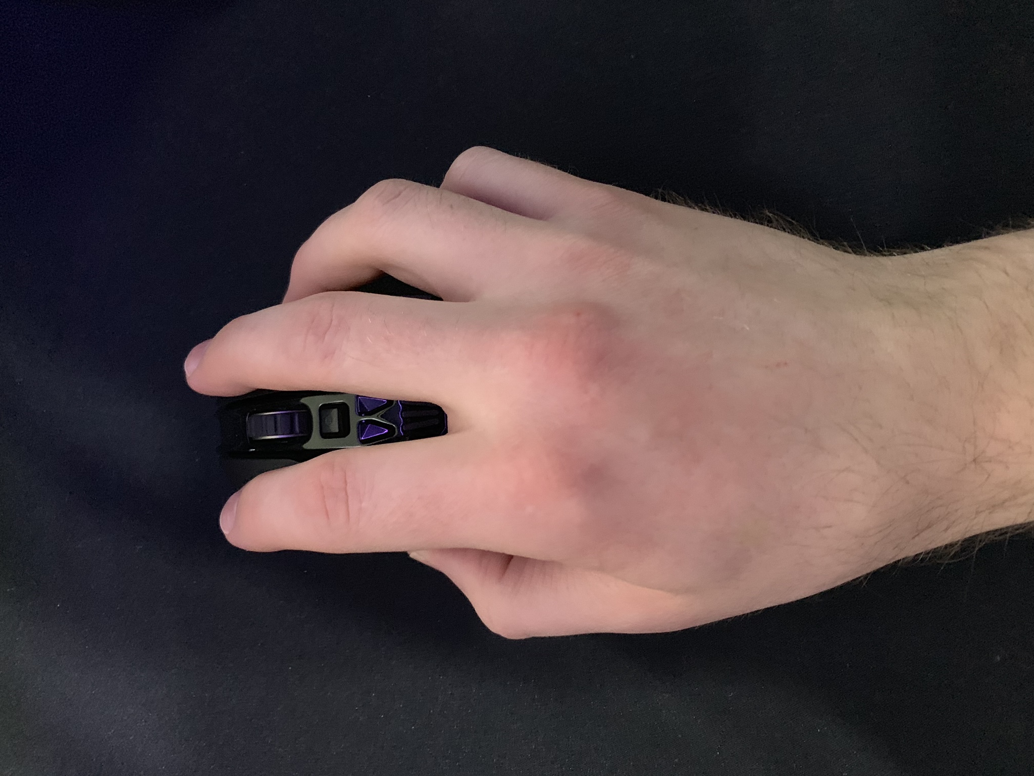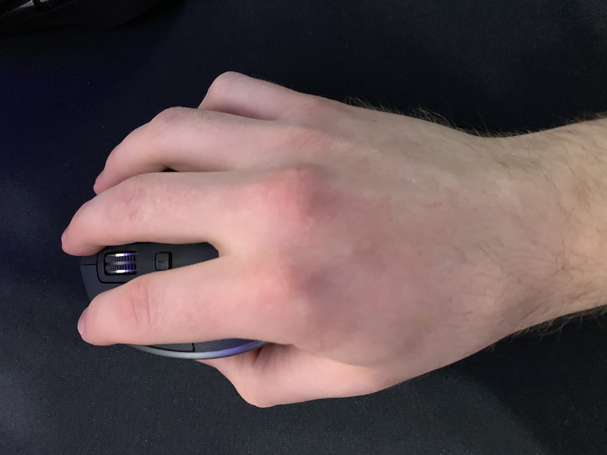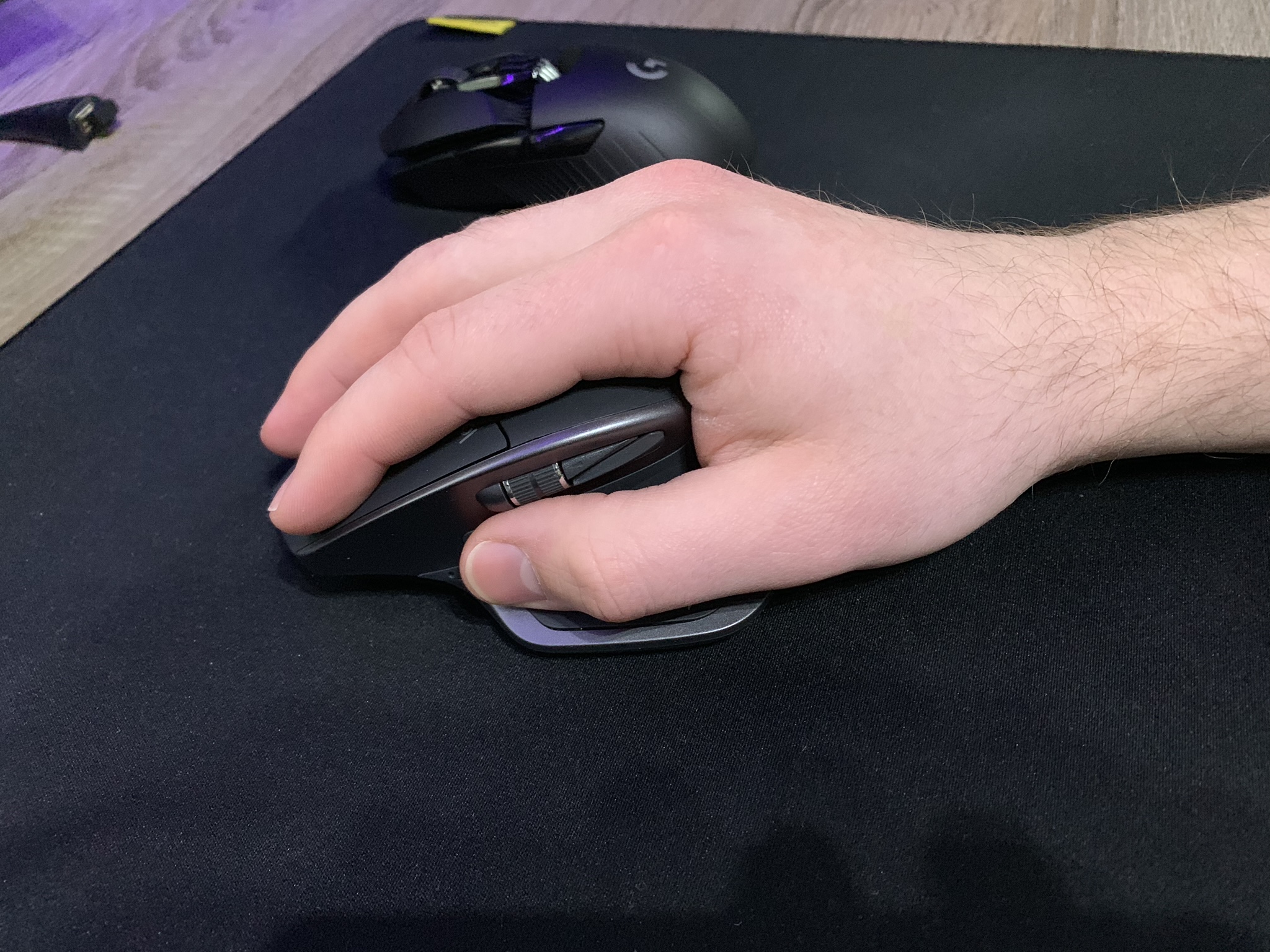 Mir hat die Handhabung von den Logitech Mäußen (MX Revolution,Performance,Master 2S) immer sehr gut gefallen, weil ich die Maus komplett umgreife und recht große Hände habe. Anbei mal ein Bild. Leider fehlen bei der neuen Master jedoch gut erreichbare Daumentasten. Zusätzlich habe ich noch eine G903 hier, wo ich die Tasten generell gut erreiche. Leider ist die Maus ansich etwas zu klein. Der Sensor/Abtastung und den Widestand des Mausrades gefallen wir jedoch sehr gut. Das Gewicht ist mit eingelegtem 10g Gewicht auch trotzdem etwas zu wenig.