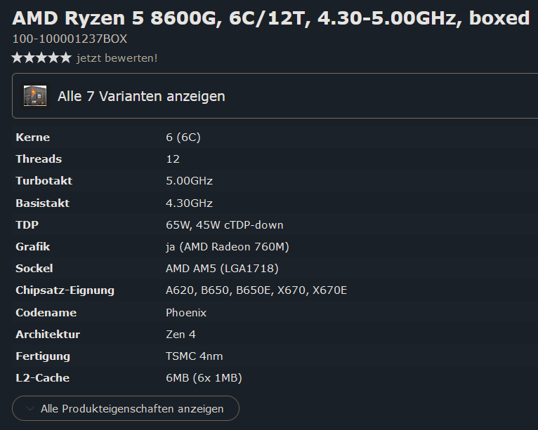 AMD schickt sich an, die neuen APUs der Serie Ryzen 8000G (Test) auch als auf Effizienz getrimmte 35-Watt-TDP-Serie auf den Markt zu bringen – also Ryzen 8000GE. „GE-APUs“ gab es auch in der Vergangenheit, allerdings nur am unteren Leistungsende, oft nur als „Athlon“. In dieser Generation scheint es anders zu kommen.
