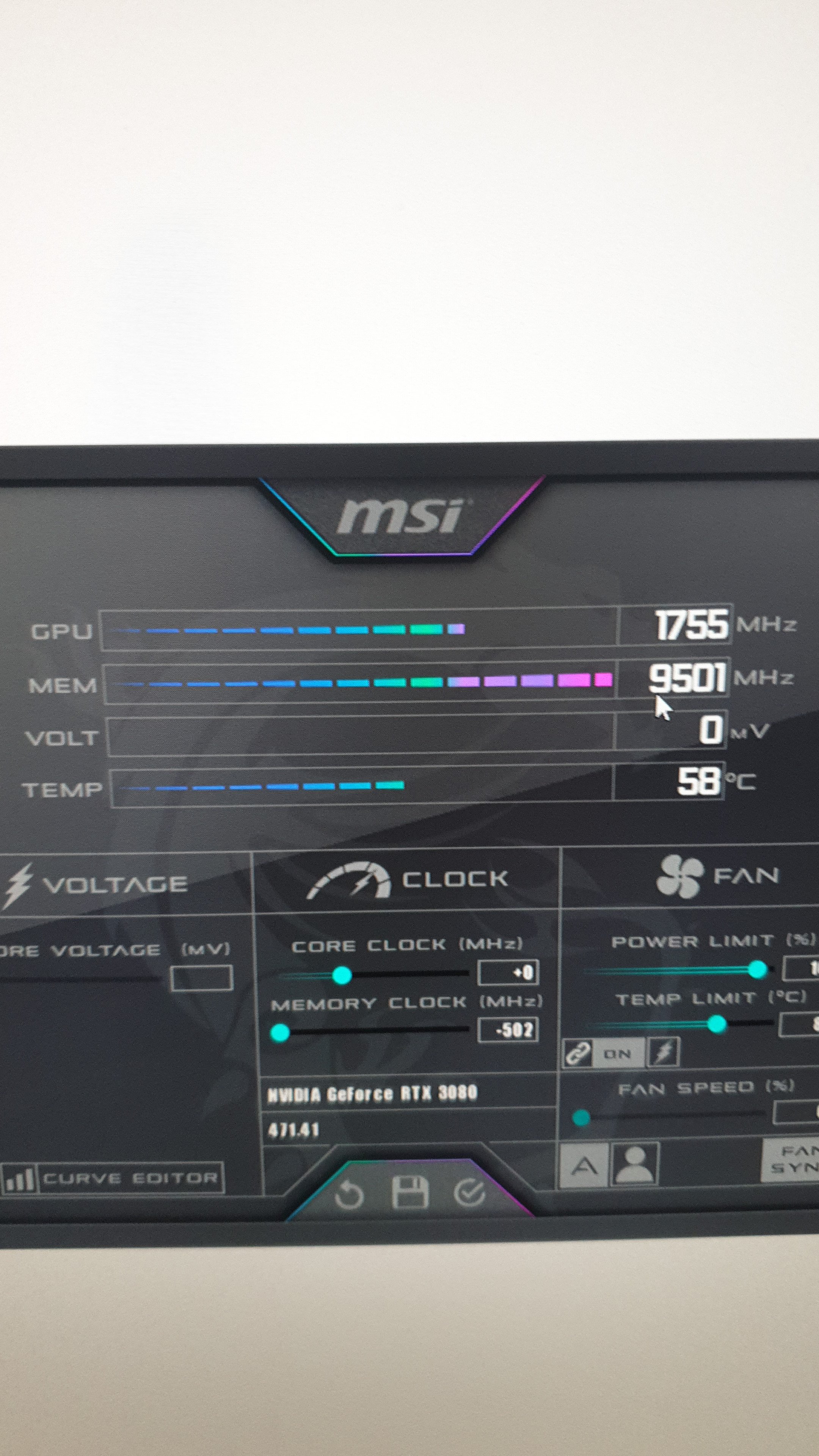 Ich habe gestern meine GeForce RTX 2060 Super durch eine neue GeForce RTX 3080 ersetzt. Natürlich wollte ich sie gleich testen, musste aber schnell feststellen das beim ersten getesteten Spiel auf 4k bei Action Lags auftreten und nach einer variierenden Zeit das System einfach neu hochfährt. Daraufhin schaute ich mir die Werte im Task Manager an und holte mir auch MSI Afterburner, bei beidem waren einige wenige Spikes bei CPU und Memory zu sehen, von 201 MHz rannte der CPU auf über 1700 MHz und Memory von 501 auf 9500 MHz. Ich weiss nicht ob diese kurzen Ausraster mit den Neustarts zutun haben könnten aber sie machen mir ebenfalls Sorgen.