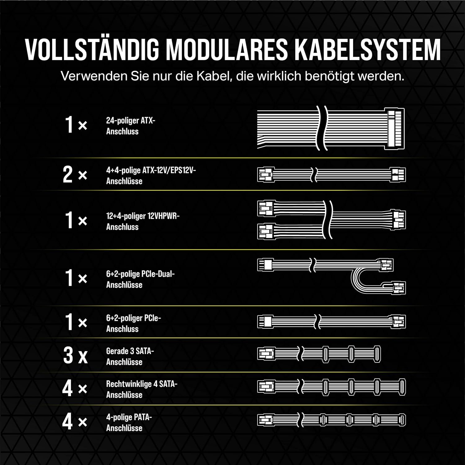 - Netzteil: Corsair RM850e (2023) PCIe 5.0 kompatibel