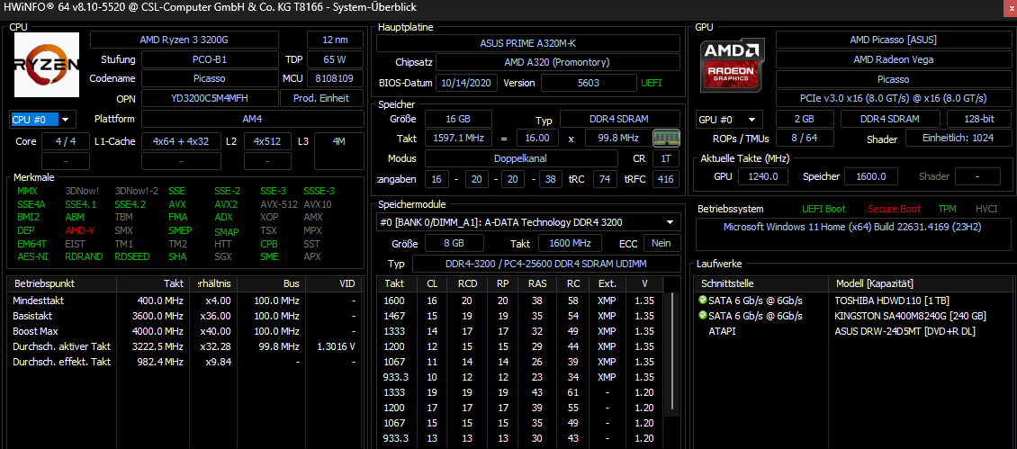 Generelle Infos : Prozessor AMD Ryzen Radeon Vega Graphics 3.60 GHz