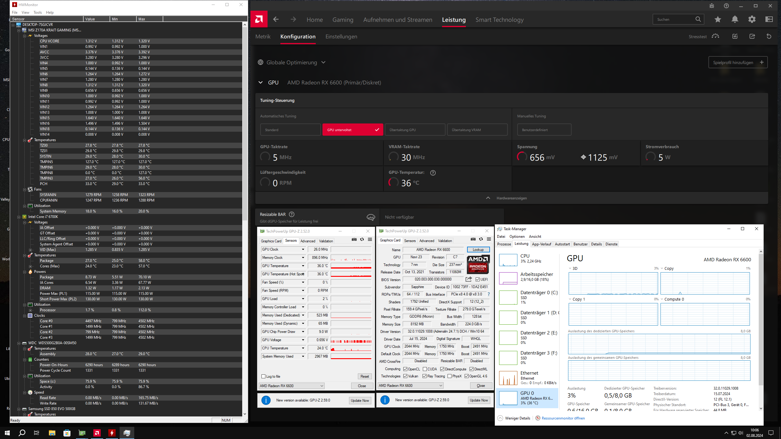 Treiber mit DDU deinstalliert ( komplett) dann alte Karte raus RX 580 neue rein RX6600 Pulse. Leider zum Test waren es 31Grad in der Bude nur grob mal angetestet und bin Happy läuft. In allen Games die ich spiele 30-40FPS mehr,reicht für mich aus. Feinjustierung werden die Tage noch gemacht.