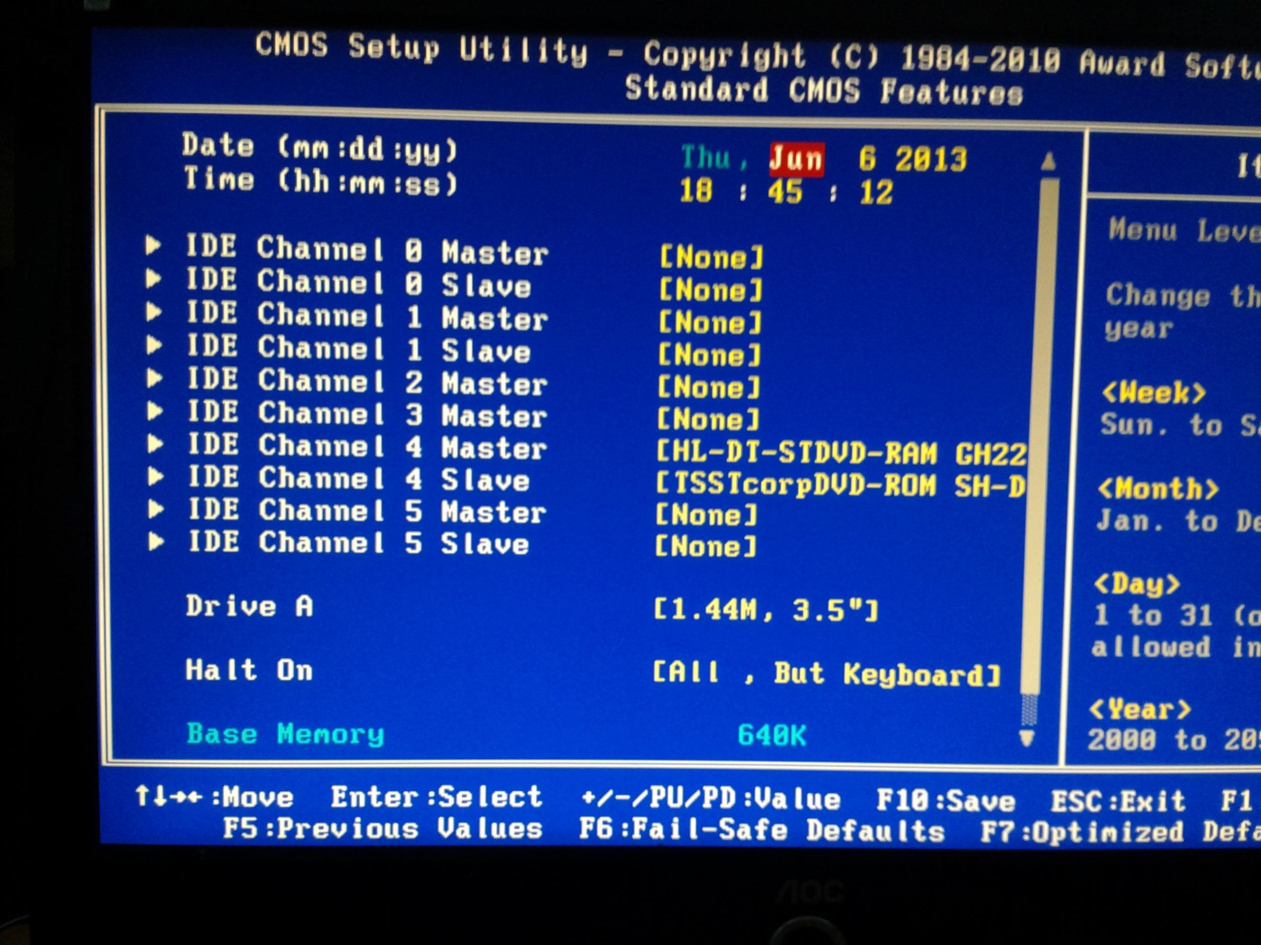 geh mal zu "Standard CMos Features" und drückst Enter, dann machst wieder ein Bild davon