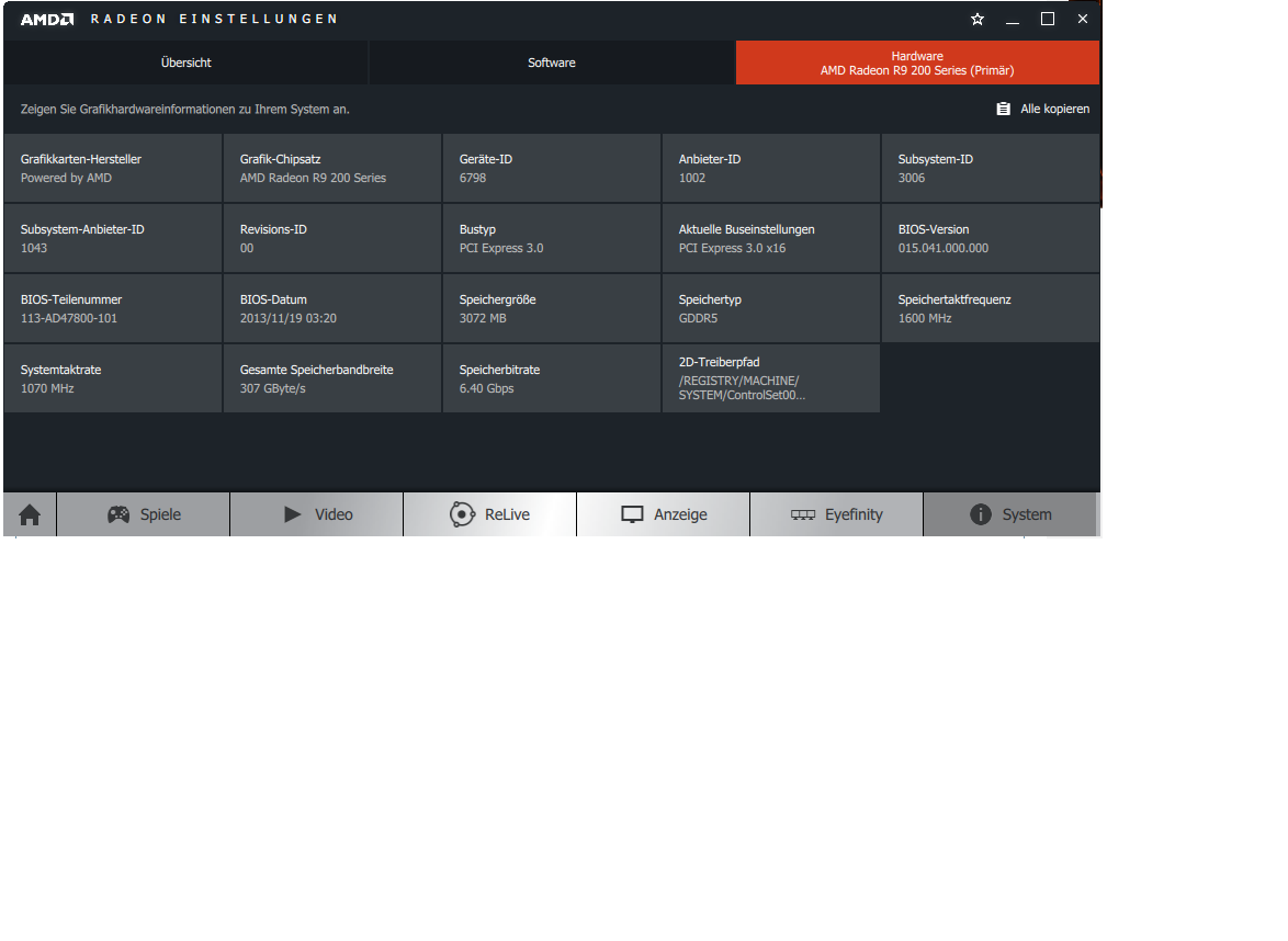 kann ich nicht genau sagen, steht nur 200 series dabei. Poste mal ein Bild vom AMD Radeon Einstellungsfenster.
