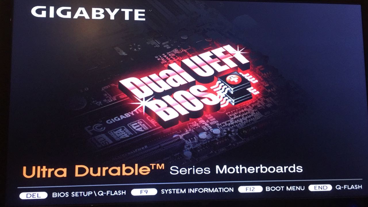 Nun nachdem er den alten Treiber deinstalliert hat und die neue Karte rechtmäßig eingebaut hat, kommt beim Start nur das Menü vom Motherboard . Er hat eine gigabyte ga-b75m-d3v drinen.