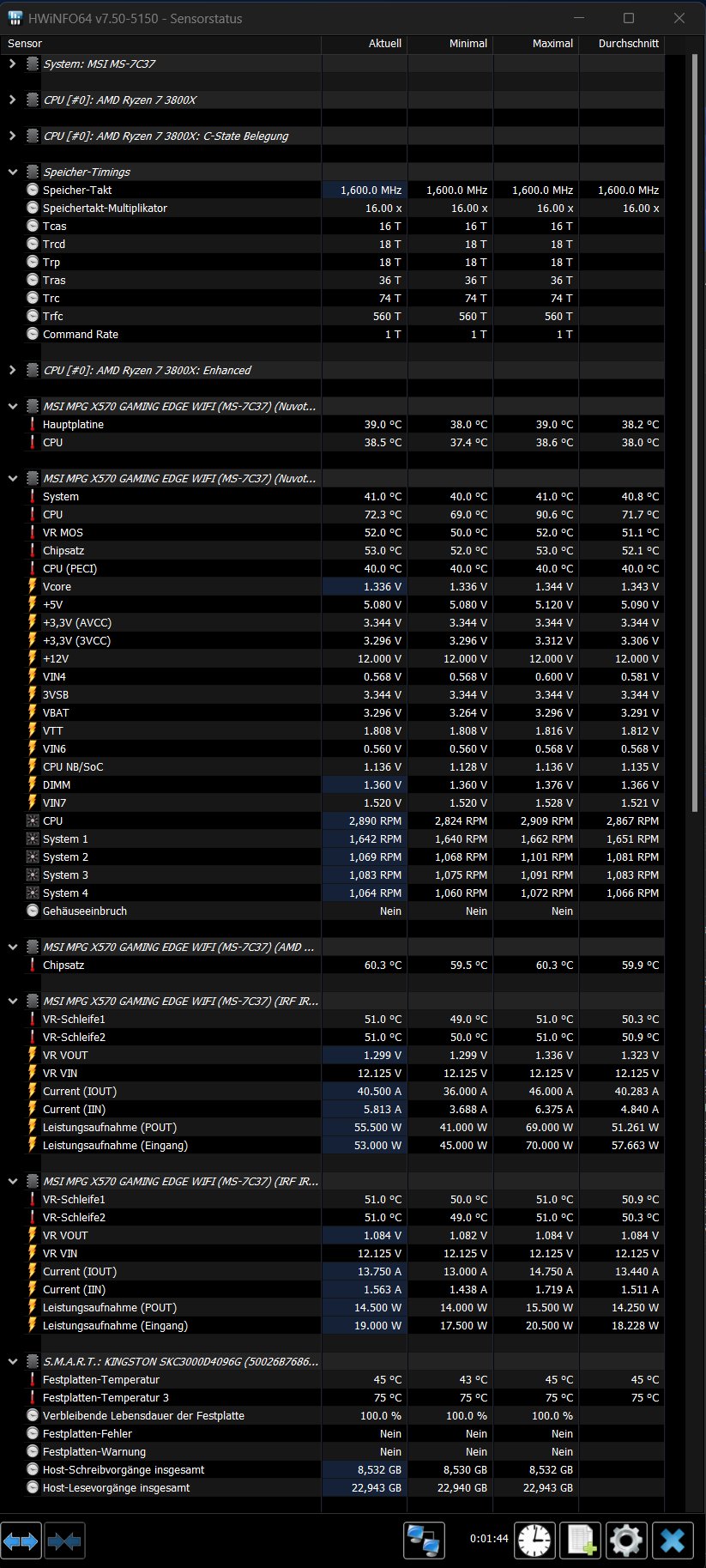 Der PC lief ohne Probleme wobei ich mir dachte, das kann es wohl nicht sein... Es war sicher nur die fehlende Einstellung mit den 3200 MHz welche zuvor auf 2400 MHz stand und habe die restliche zwei RAM-Riegel wieder hinein gegeben.