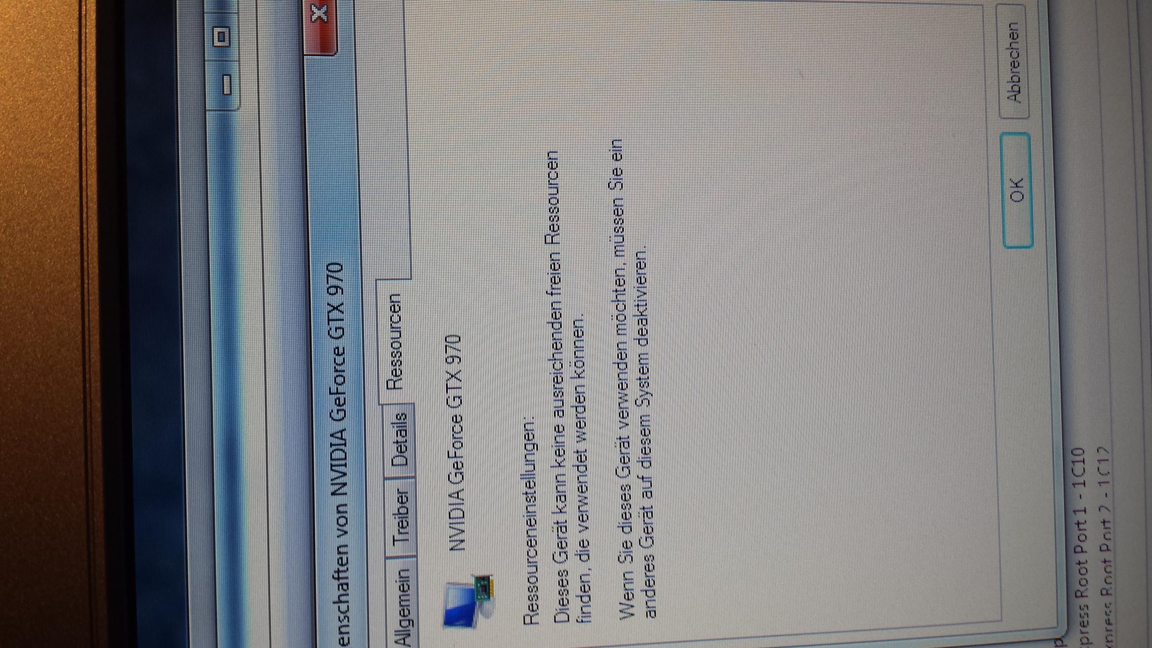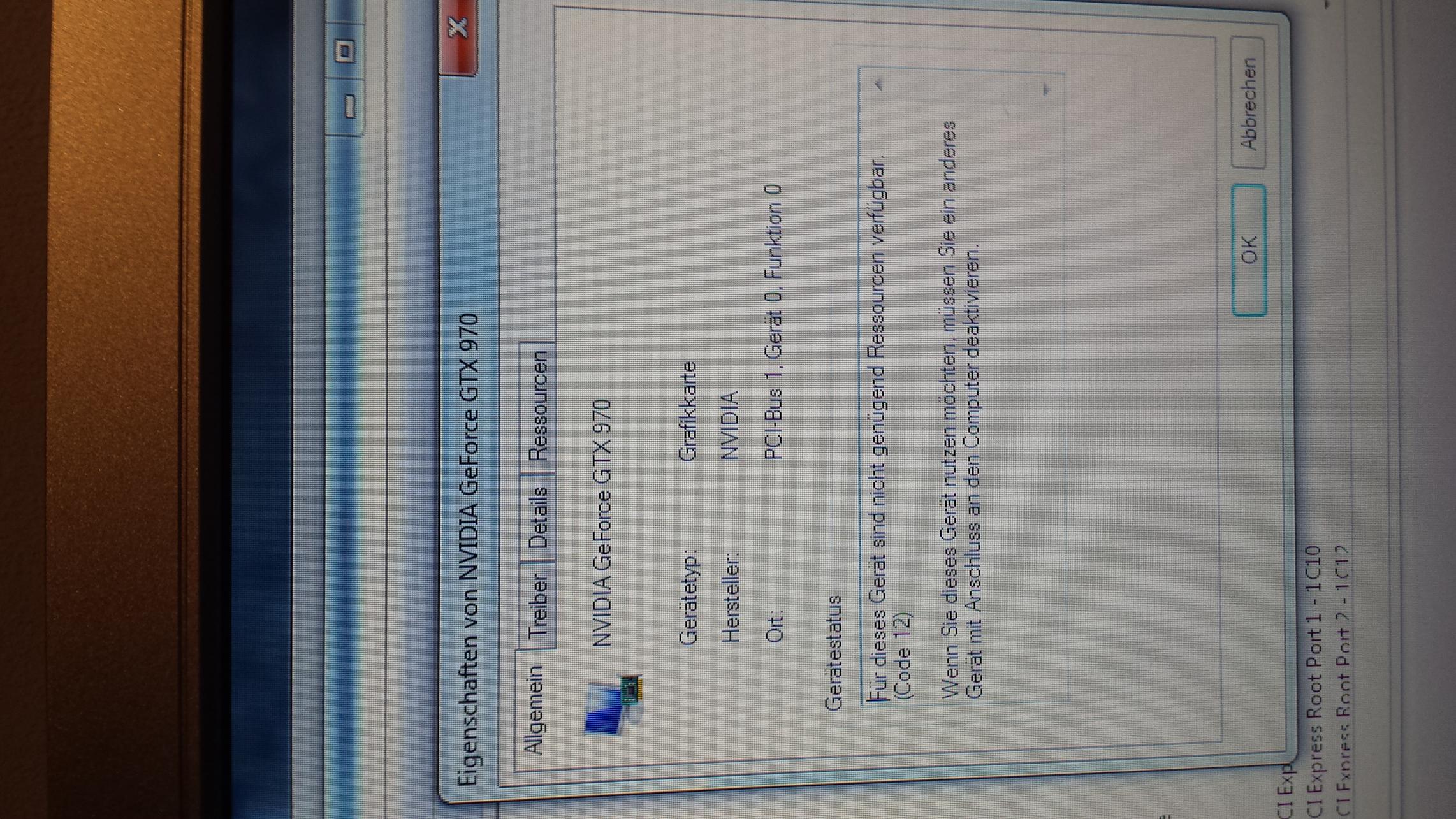 Hey Leute heute ist mein pc gehäuse, netzteil (Antec tp550w) und meine evga gtx 970 gekommen. Die restlichen Teile habe ich von meinem alten pc verwendet. Alles Eingebaut. Pc gestartet. Hp bootlogo erscheint. Bild friert ein. Ich komme nicht ins BIOS Menü und nicht in den abgesicherten Modus. Es piept 3 mal und dann kommt oben der kleine weiße Strich und nichts geschieht. Mit der alten Karte funktionierts tadellos. Ich hab schon die alten Treiber gelöscht. Trotzdem nichts.
